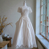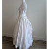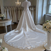 This is an Alfred Angelo with a beaded bodice and full Satin bottom. perfect cap sleeves for modesty. This dress bustle in the back to be enjoyed all day long.
